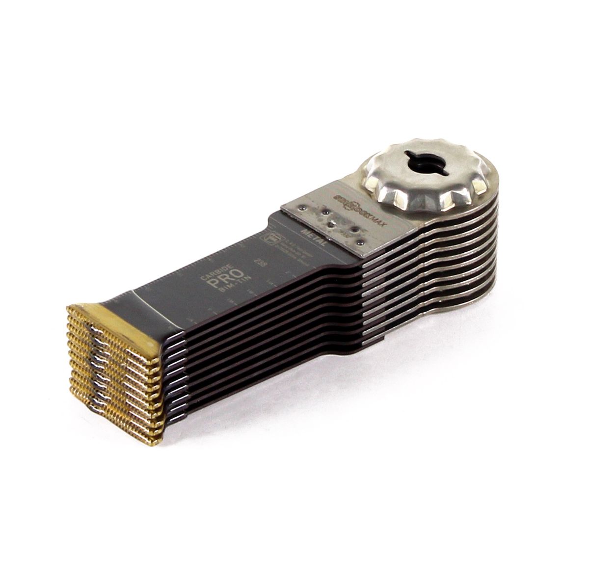 L'estremamente robusta lama per sega ad immersione in carbonio rivestita di nitruro di titanio ha una durata 30 volte superiore a quella delle lame HSS e una durata del 100% superiore a quella delle lame in carbonio non rivestito: per questo motivo risulta essere l'unica scelta adatta alla lavorazione di materiali duri come metalli ferrosi, acciaio inossidabile o tubi di rame. Viti temprate (Spax) e viti ad alta resistenza non impediscono alla lama di svolgere il proprio lavoro. Anche i materiali abrasivi come mattoni, muratura o pannelli in fibrocemento possono essere lavorati senza problemi. Inoltre, la lama Carbide Preo può essere utilizzata per lavorare laminati, CFRP (plastica rinforzata con fibra di carbonio) e GFRP (plastica rinforzata con fibra di vetro). Con materiali a base di legno come il legno duro o il truciolato si ottengono ottime prestazioni di taglio. La forma stretta e dentellata garantisce una velocità di taglio ottimale e una buona asportazione dei trucioli.