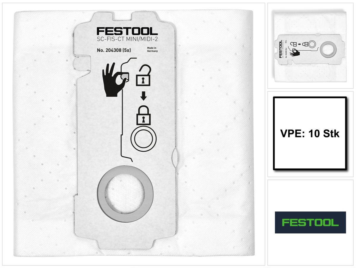 10x Festool Sacchetto filtro SELFCLEAN SC-FIS-CT MINI/MIDI-2/10
