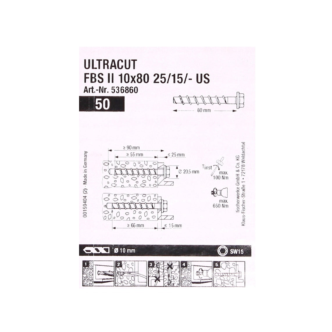 Fischer ULTRACUT FBS II Betonschrauben 10x80mm 25/15/- 50 Stk. Sechskantkopf SW15 ( 536860 )