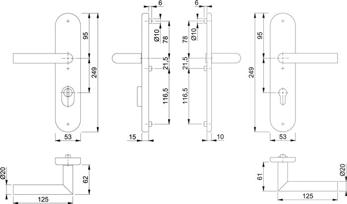 per porte d'ingresso esterne e piane - testata secondo DIN 18257, DIN EN 1906 e DIN 18273 - maniglia con cuscinetto fisso/rotante - (categoria d'uso 4) - cuscinetto a strisciamento esente da manutenzione - connessione a perno a profilo completo - sottostruttura: acciaio all'esterno, zama/acciaio all'interno incl. camme di supporto - fissaggio nascosto e continuo - perforazione PZ - quadrato 9 mm - utilizzabile DIN sinistra/destra - distanza 72 mm