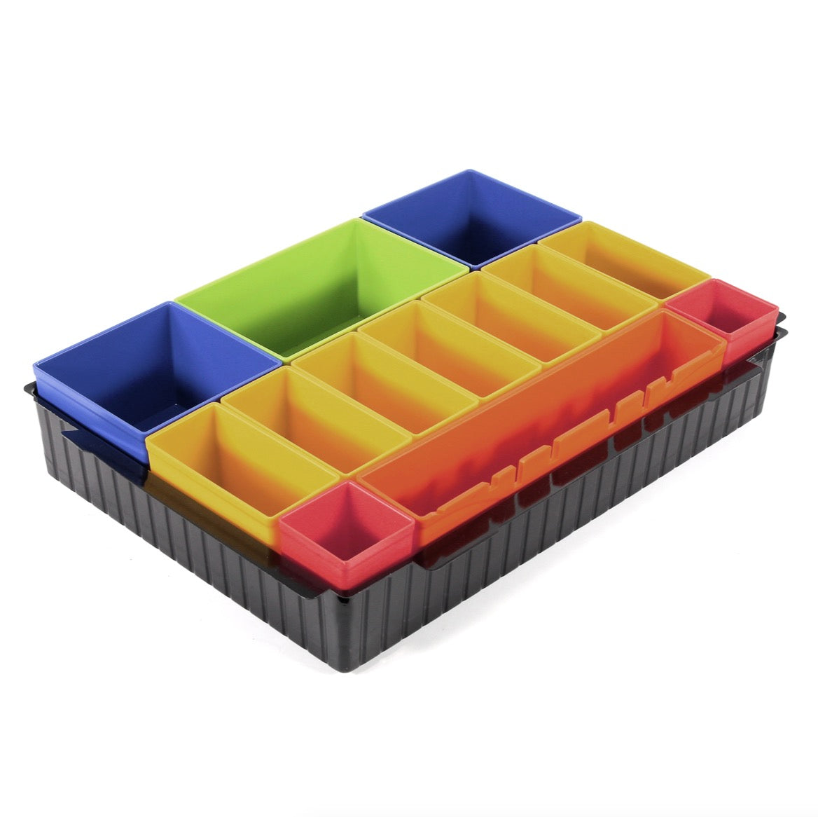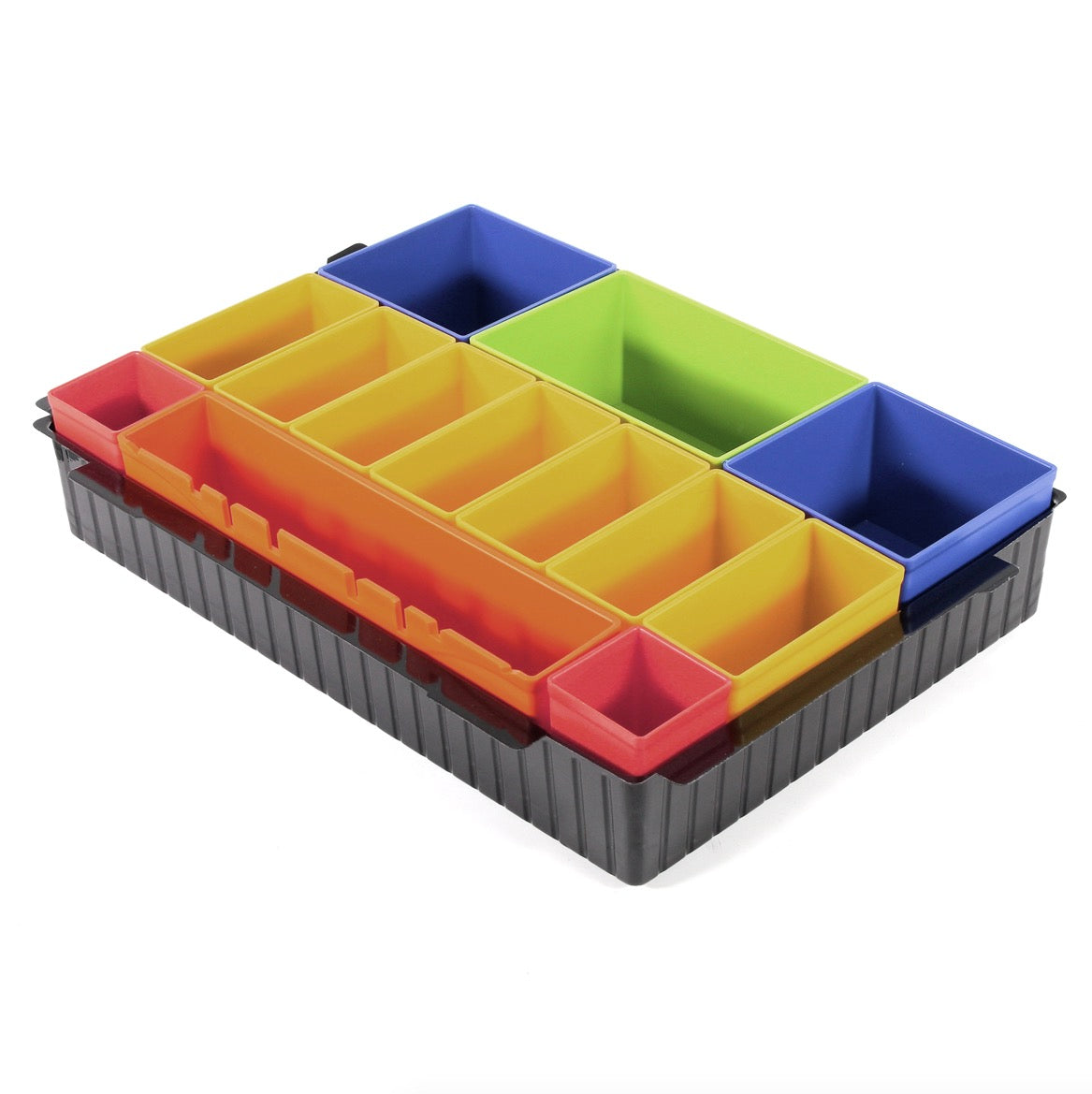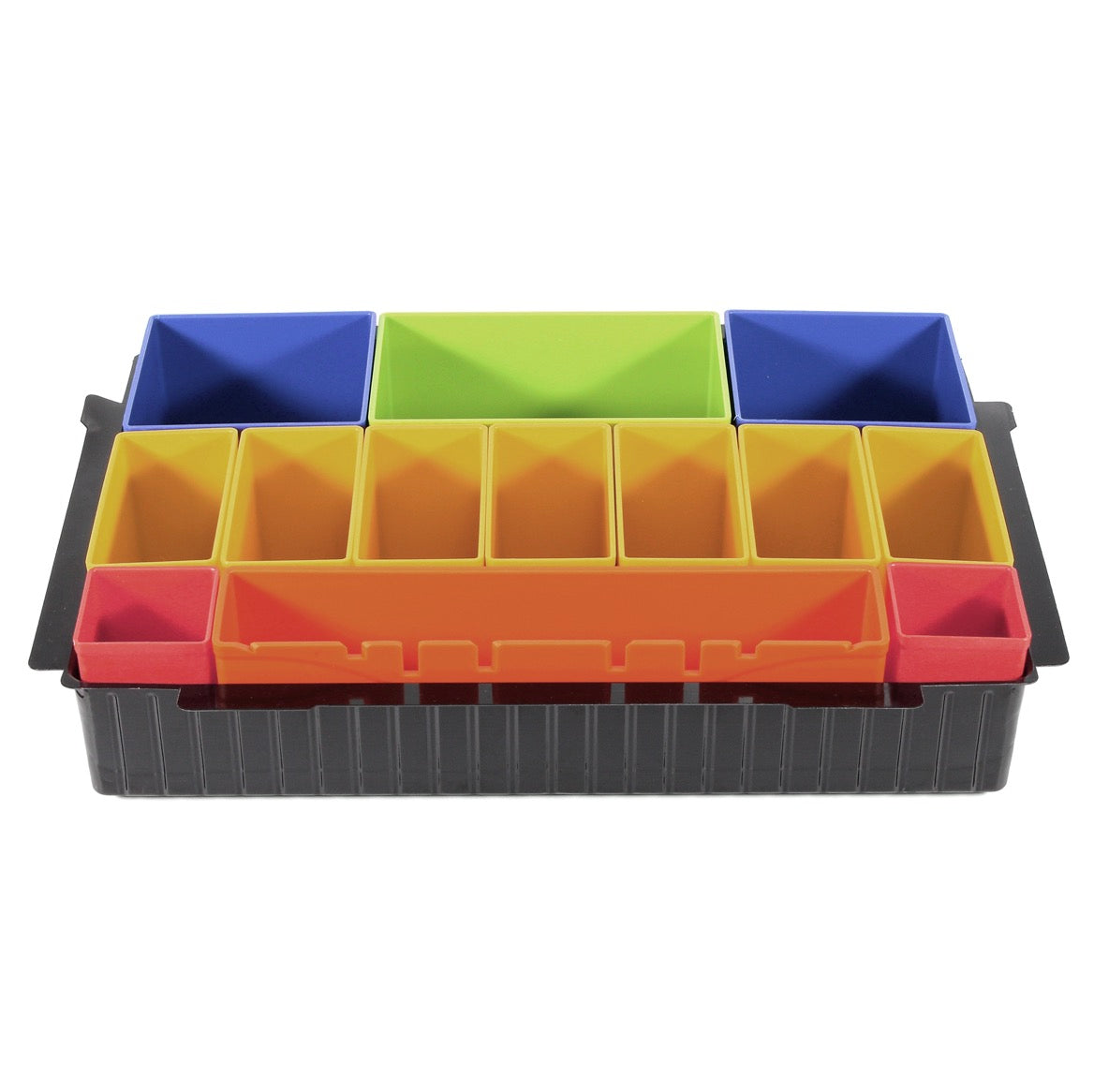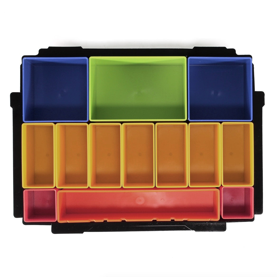 Questo inserto con 13 contenitori colorati si adatta a tutti i Makita Makpac. È ideale per punte, viti, dadi e altri piccoli accessori. Le scatole possono essere rimosse singolarmente dall'inserto e ricomposte a seconda delle necessità all'interno dell'intarsio. L'inserto è particolarmente adatto per la valigetta MAKPAC di dimensioni 1.