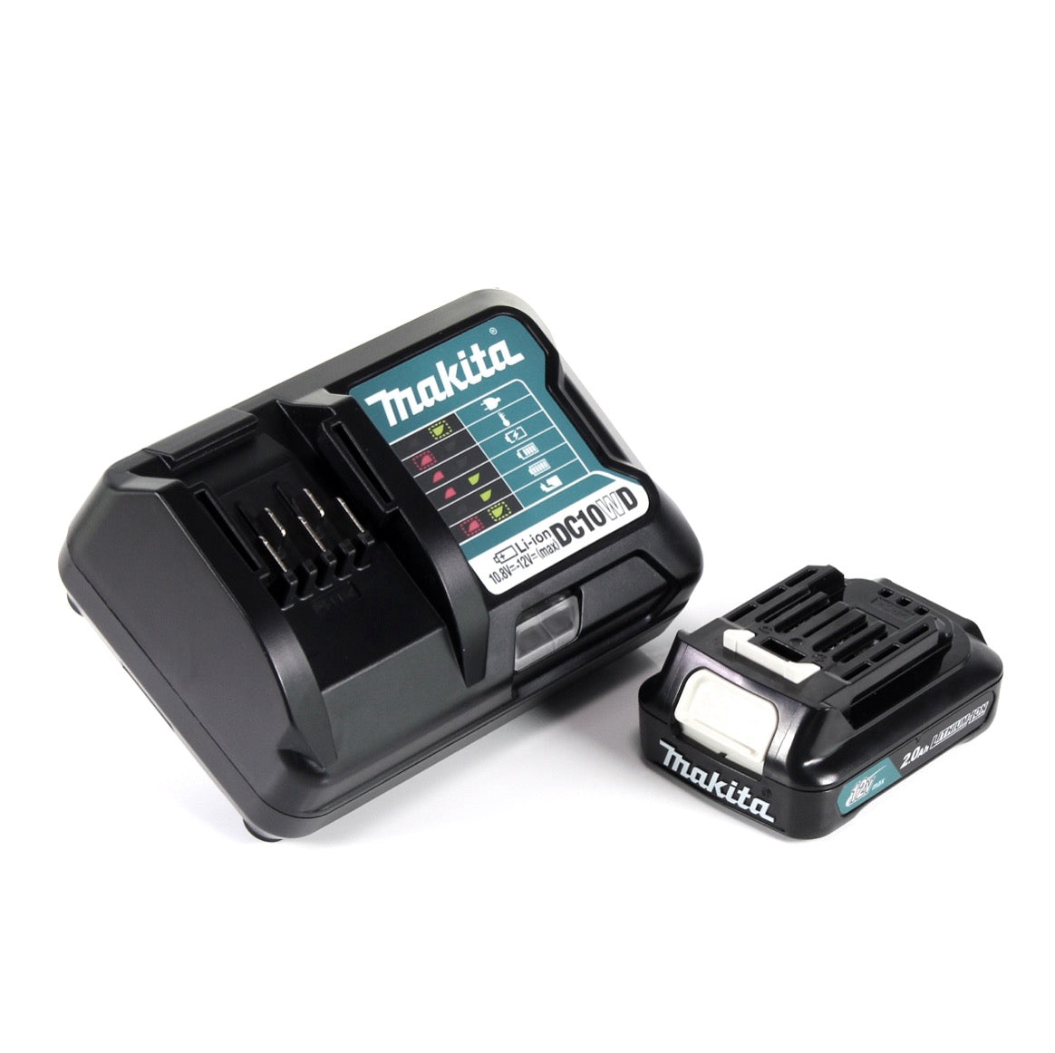 Kit alimentatore Makita 12 V con 1 batteria BL1021B da 2,0 Ah + caricabatteria DC10WD