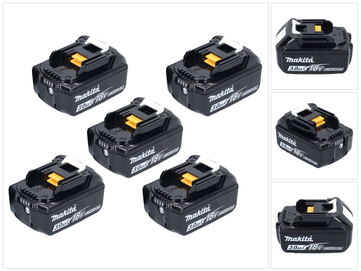 Kit di batterie Makita 5x BL 1830 B 18 V 3,0 Ah / 3000 mAh Li-Ion ( 5x 197599-5 ) con display LED - originale, non copiato