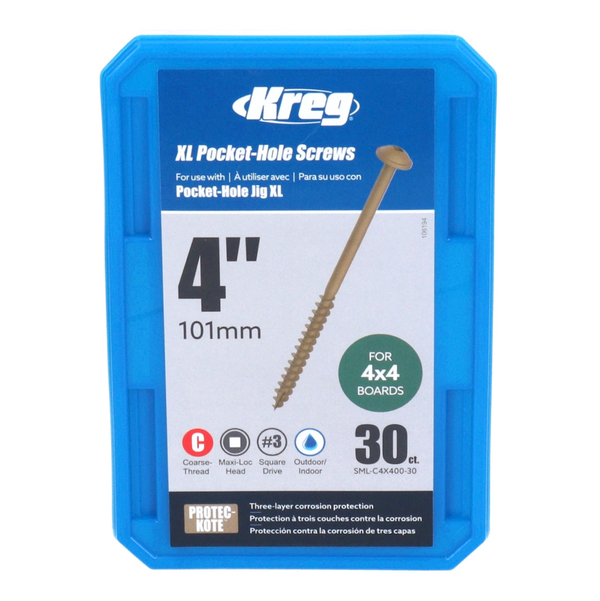 Kreg XL Pocket Hole Schrauben 4,0 x 100 mm 30 Stk. ( SML-C4X400-30 ) Teilgewinde Robertson