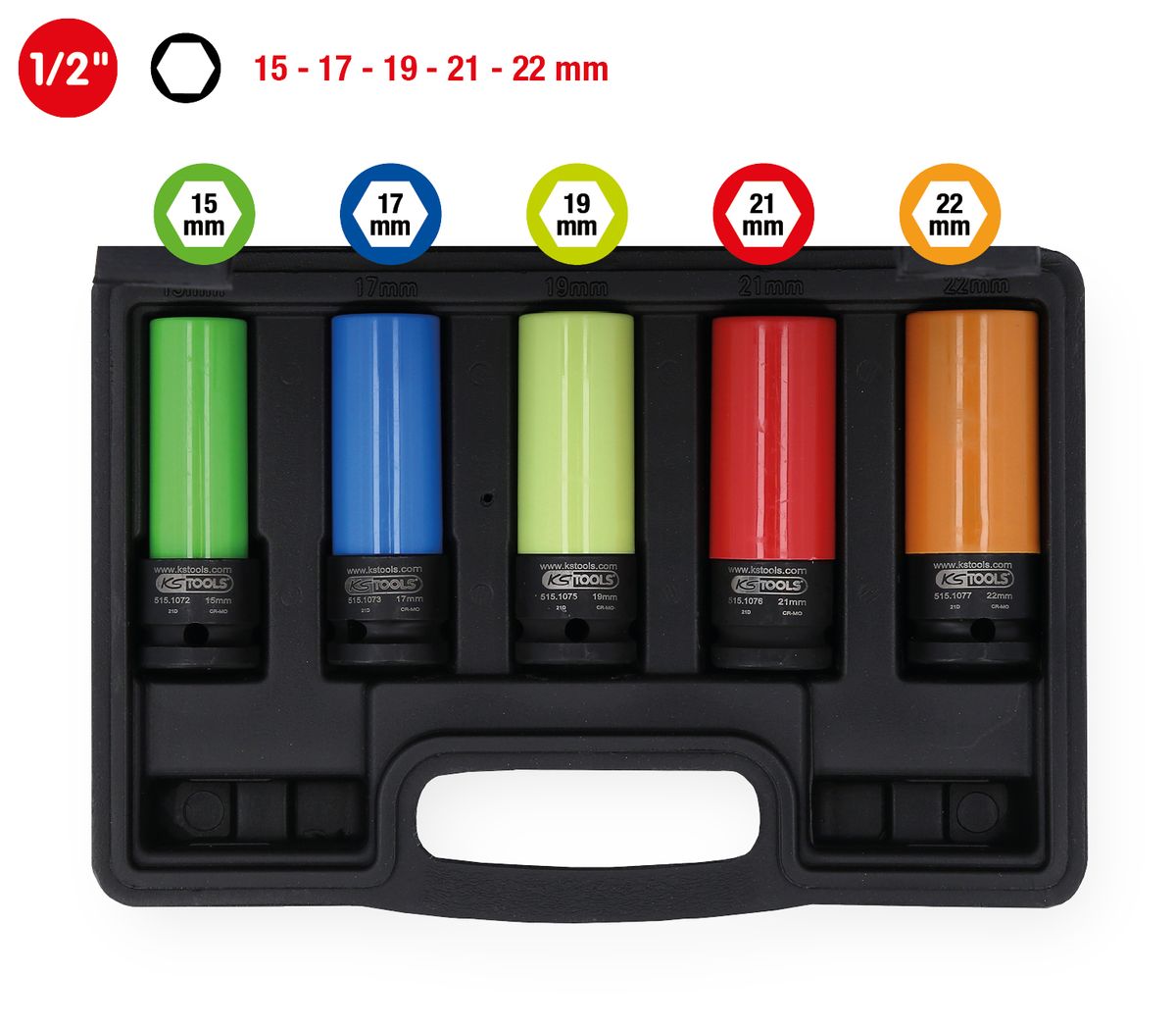 KS TOOLS 1/2' Serie di bussole p.avvitatori ad impulsi p.cerchi in lega,5pz.17-21mm ( 515.0870 )