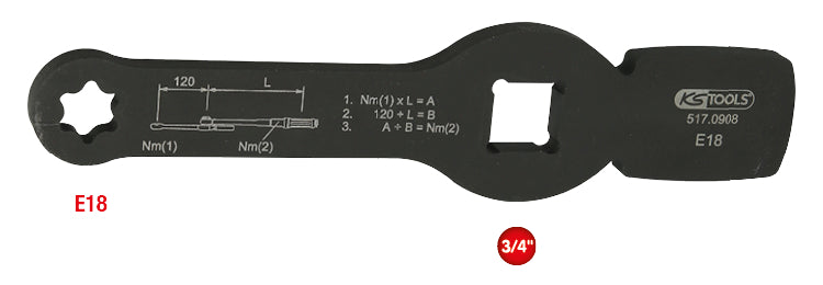 KS TOOLS 3/4' Chiave Torx per avvitatore elettrico con 2 superfici di battuta, E18 ( 517.0908 )