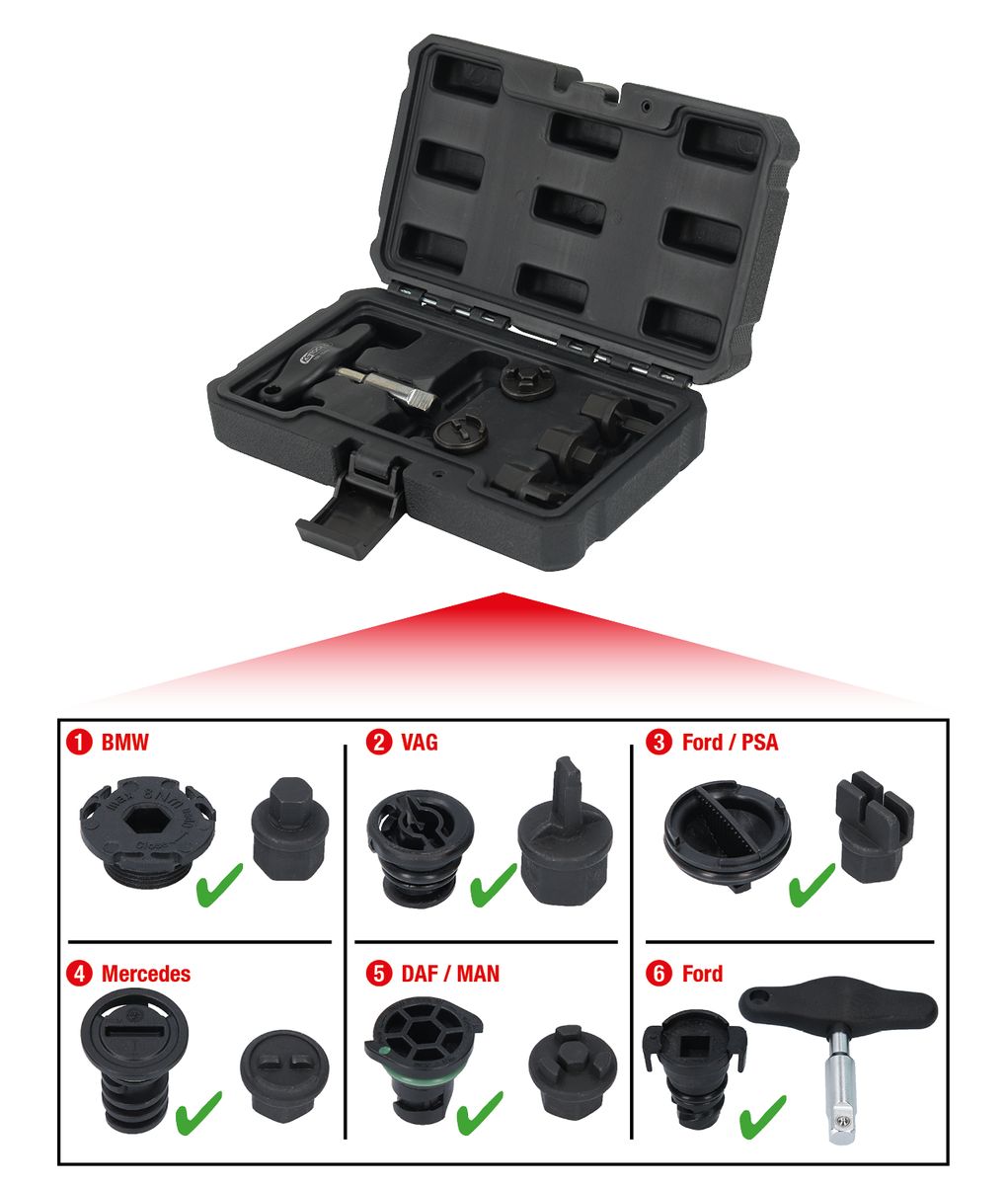 KS TOOLS 3/8' Kit profilo speciale cambio olio per vite di scarico dell'olio in plastica, 6 pz ( 150.1030 )