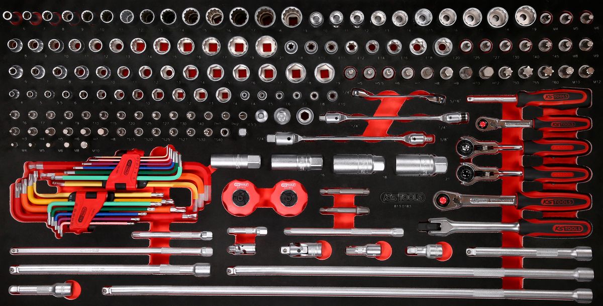 KS TOOLS Serie chiave a bussola 1/4'' + 3/8'' nell'inserto in schiuma, 183 pz ( 813.0183 )