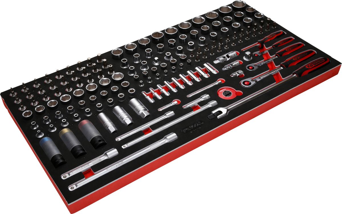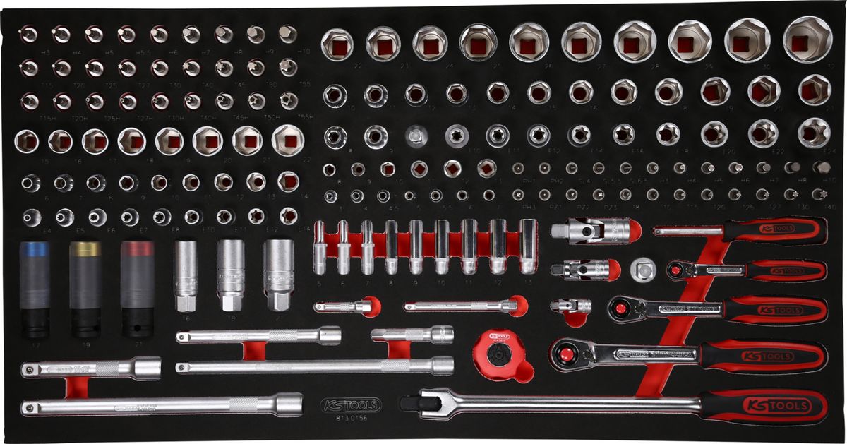 KS TOOLS Serie di chiavi a bussola 1/4'' + 3/8'' + 1/2'' nell'inserto in schiuma, 156 pz ( 813.0156 )