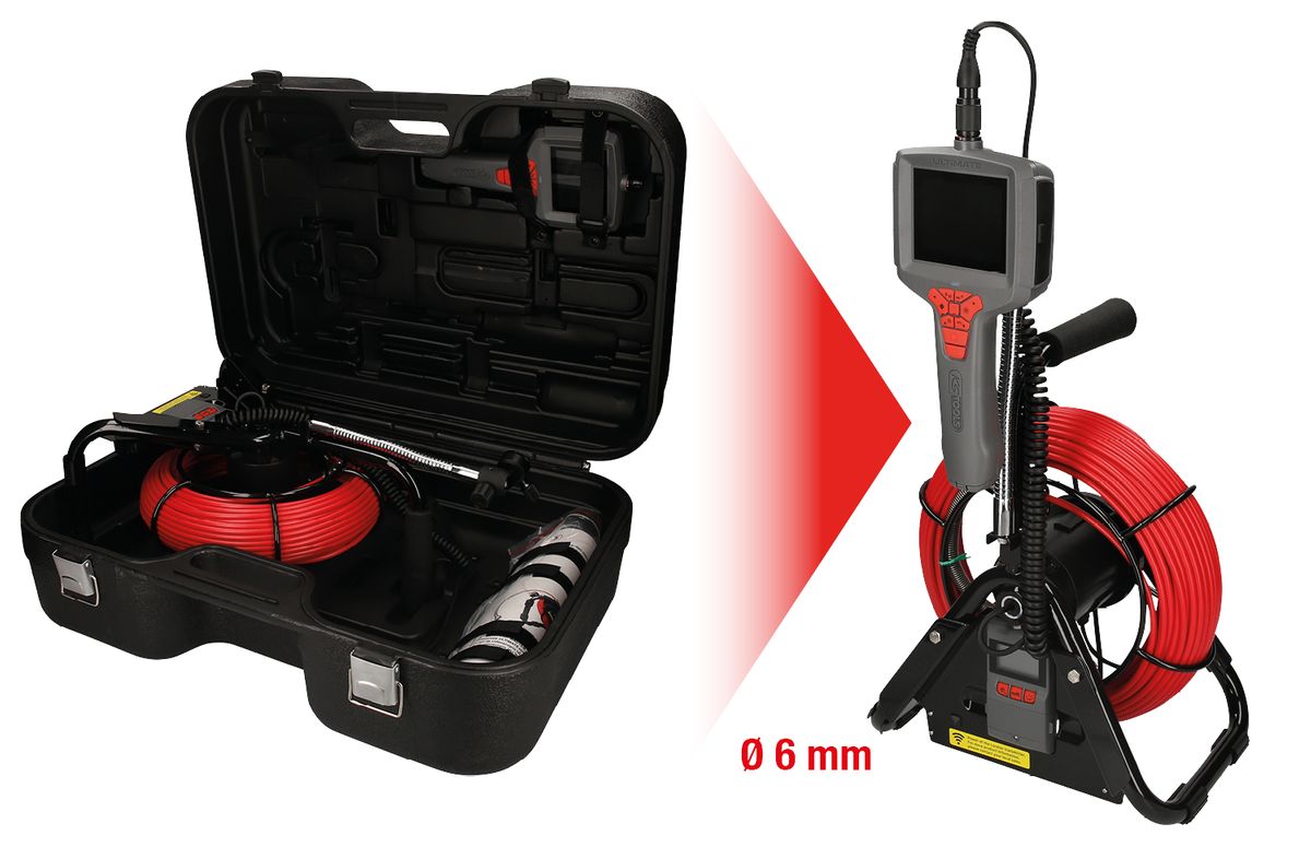 Serie videoscopio BASIC+, 0° su avvolgitore, 22 metri, Ø28 mm,, testa della videocamera 0° Ø 28 mm - Serie videoscopio ULTIMATEvision MASTER, con sonda avvolgibile