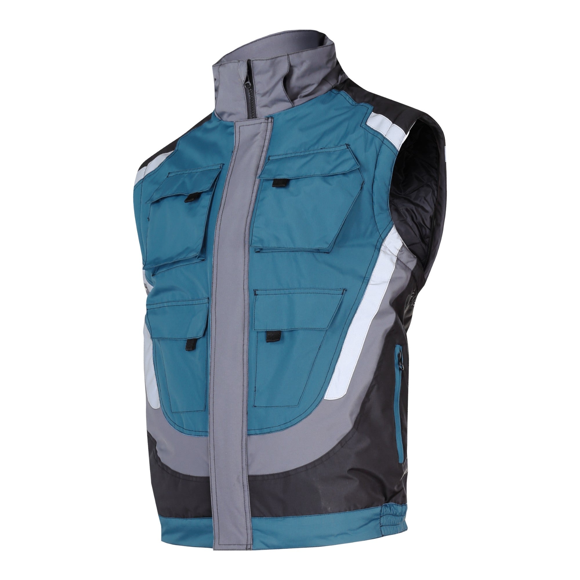 LAHTI PRO Gepolsterte Arbeitsacke mit Reflexstreifen Größe S ( L4092401 ) schwarz grau türkis