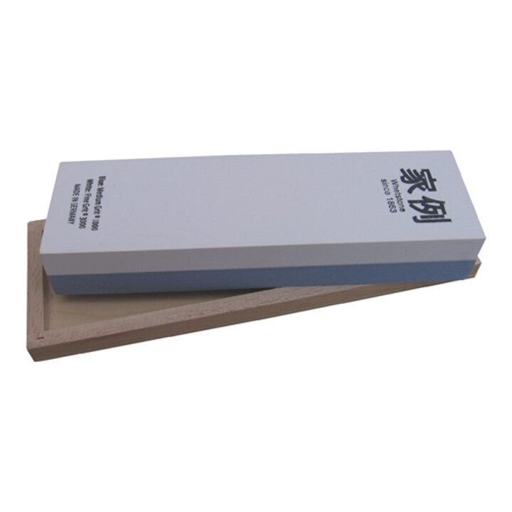Stile giapponese - ampia superficie di affilatura - adatta a utensili e coltelli di grandi dimensioni - uso a umido - in valigetta di legno lucidata