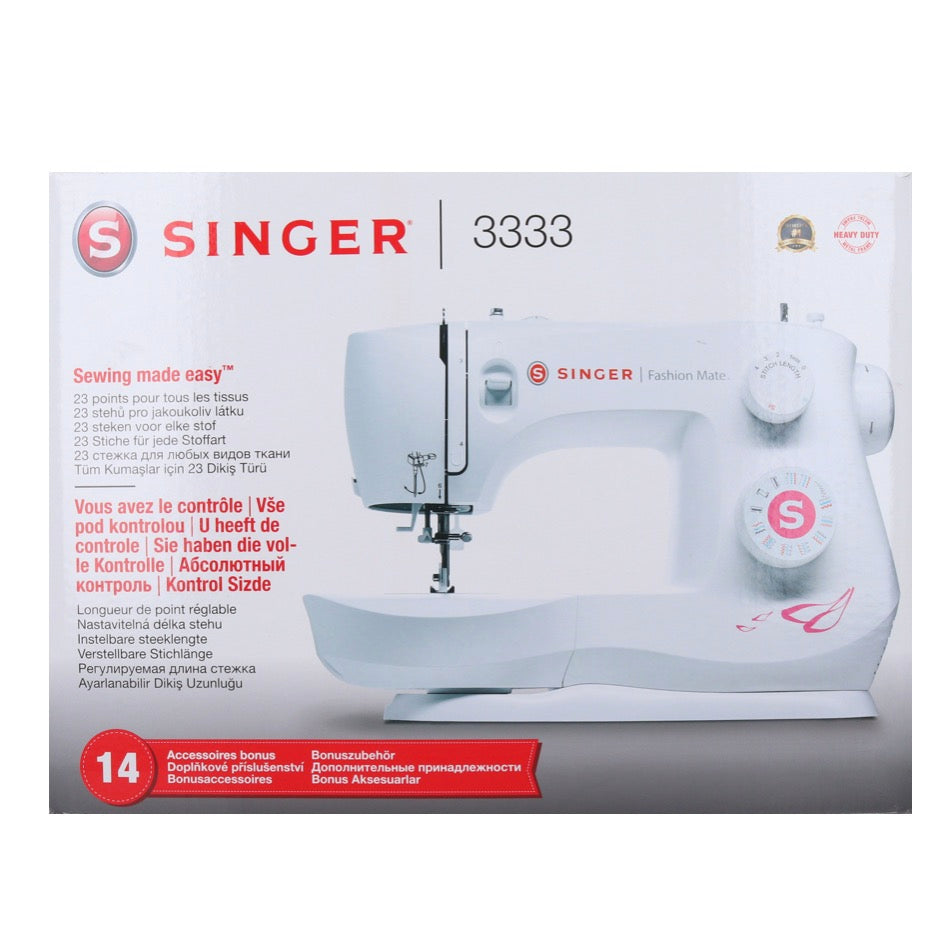 La SINGER Fashion Mate 3333 è una macchina per cucire versatile e facile da usare, ideale per i principianti. Offre 23 diversi programmi di cucito per un'ampia gamma di tessuti e attività, compresa l'asola in 4 fasi. La facilità d'uso è garantita da funzioni quali la bobina TopClick, l'infilatore automatico e la possibilità di regolare la lunghezza e la larghezza del punto. La macchina è dotata di un robusto alloggiamento in metallo, di un pratico braccio libero per la cucitura circolare, di un'azione automatica a scatto per un rapido cambio del piedino e di una distanza extra elevata dal piedino. L'ampia gamma di accessori completa il pacchetto complessivo e rende la SINGER Fashion Mate 3333 una compagna robusta, affidabile e flessibile per tutti i lavori di cucito più comuni.