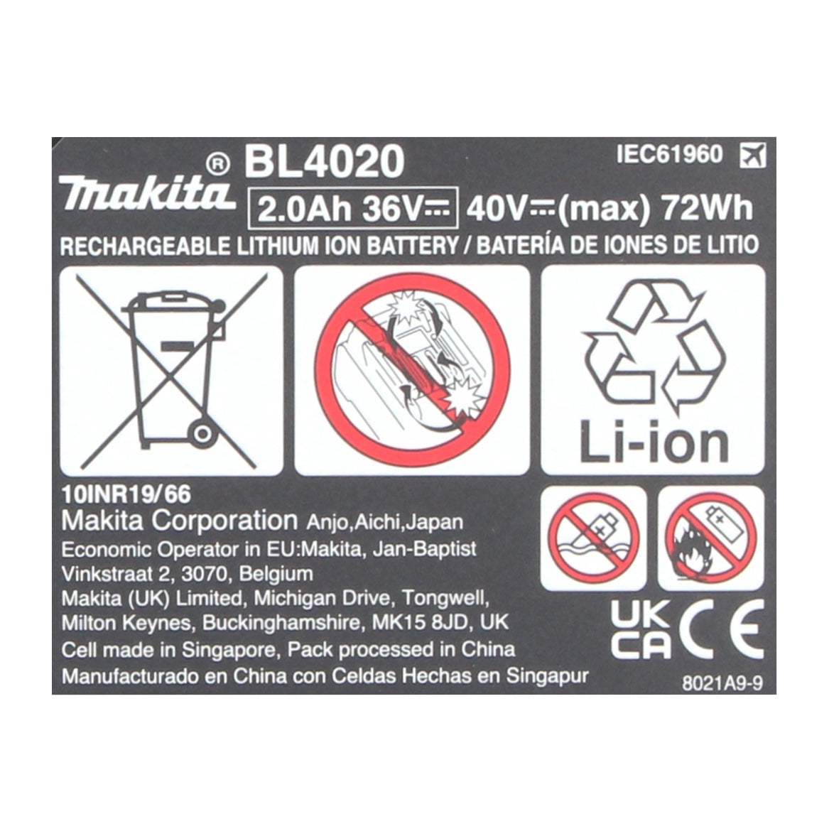 - 4x Makita BL 4020 40 V max. 2,0 Ah Akku