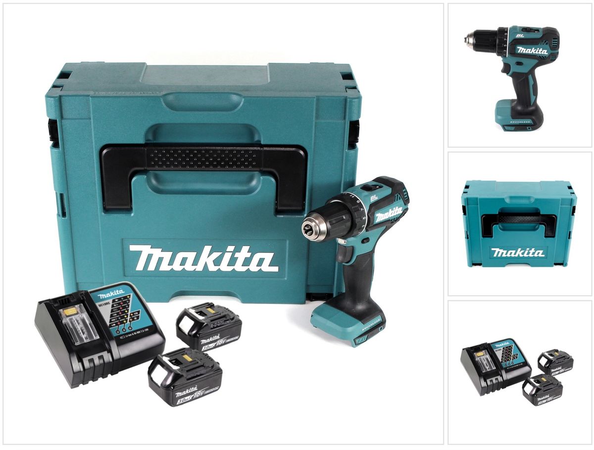 Makita DDF 485 RFJ Trapano avvitatore a batteria 18V / 50Nm in valigetta Makpac + 2x Batterie 3,0 Ah + Caricatore