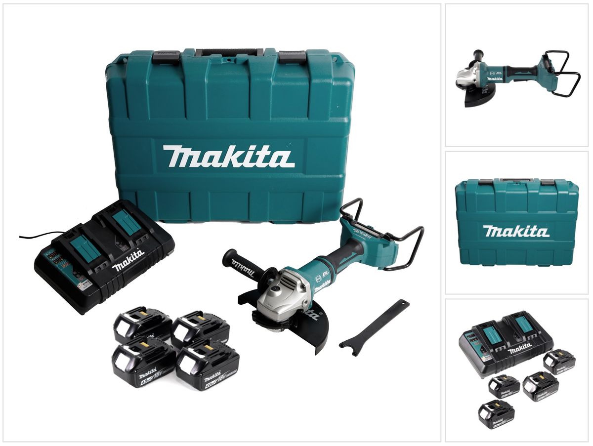Makita DGA 900 PM4KX2 Smerigliatrice a batteria 36V (2x18V) 230mm + 4x Batterie 4,0 Ah + Caricatore doppio + Dado Ezynut + Valigetta Makita