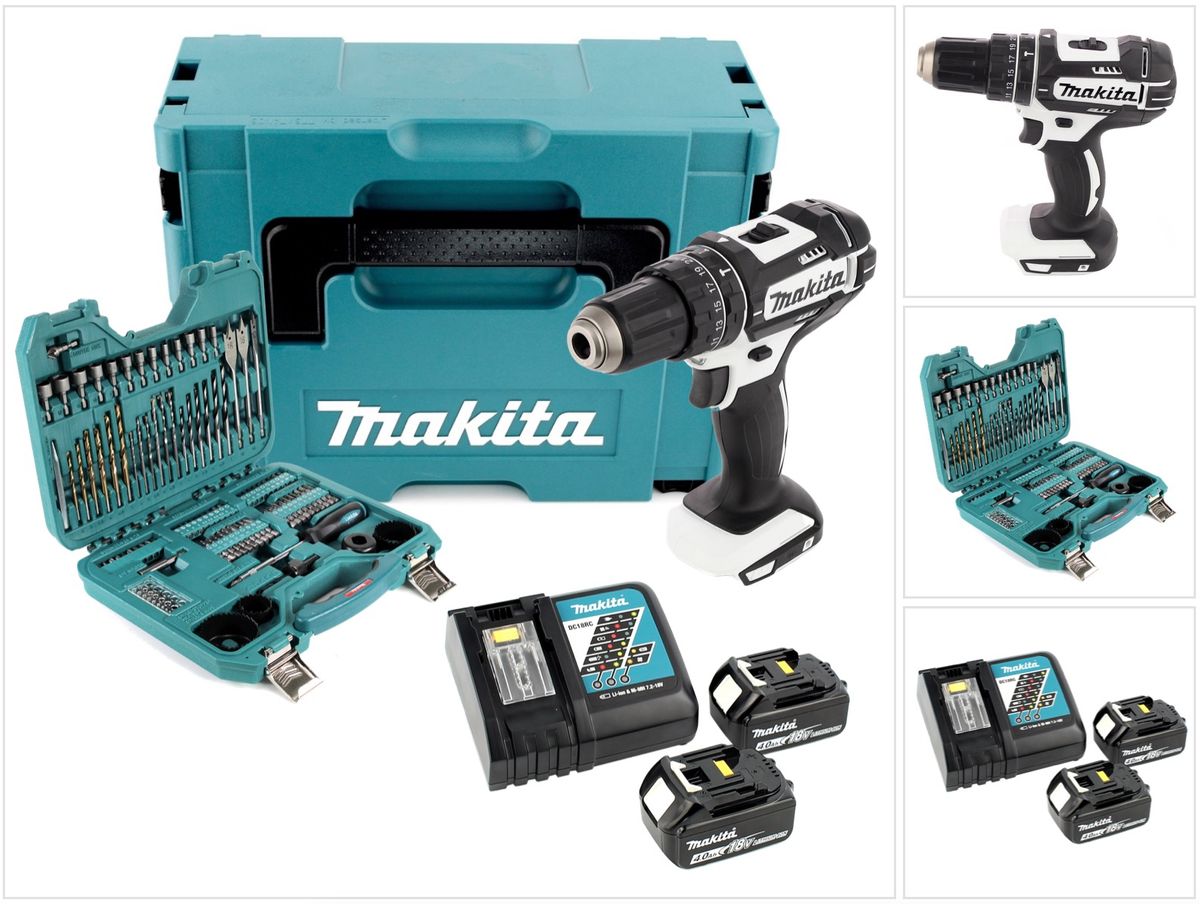 - 1x Makita DHP 482 W 18 V Li-Ion Akku Schlagbohrschrauber weiß