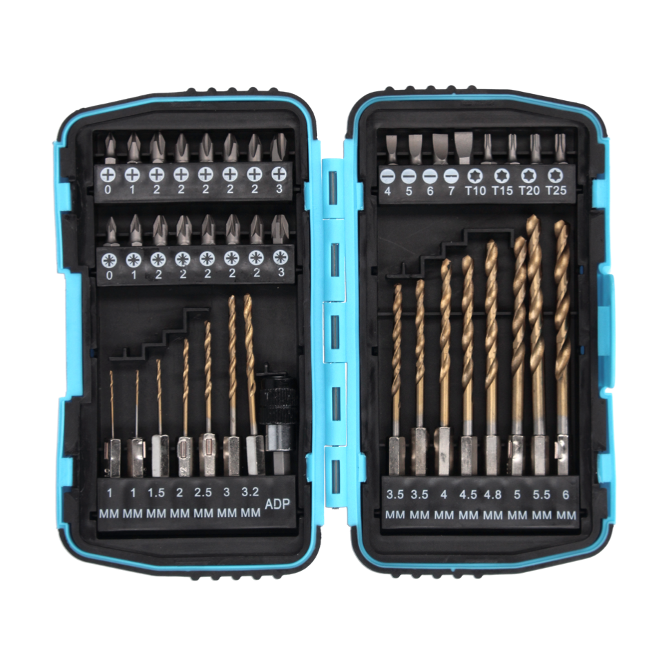 - 14x Bohrer ( 2x 1 / 1x 1,5 / 1x 2 / 1x 2,5 / 1x 3 / 1x 3,2 / 1x 3,5 / 1x 4 / 1x 4,5 / 1x 4,8 / 1x 5 / 1x 5,5 / 1x 6 mm )