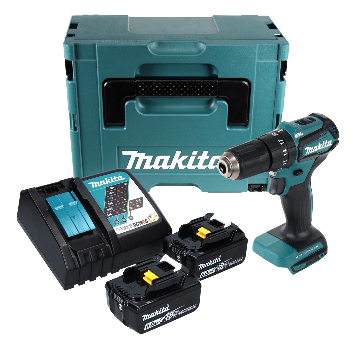 Makita DHP 483 RGJ Trapano avvitatore con percussione a batteria 18 V 40 Nm + 2x Batterie 6,0 Ah + Caricabatterie + Valigetta Makpac