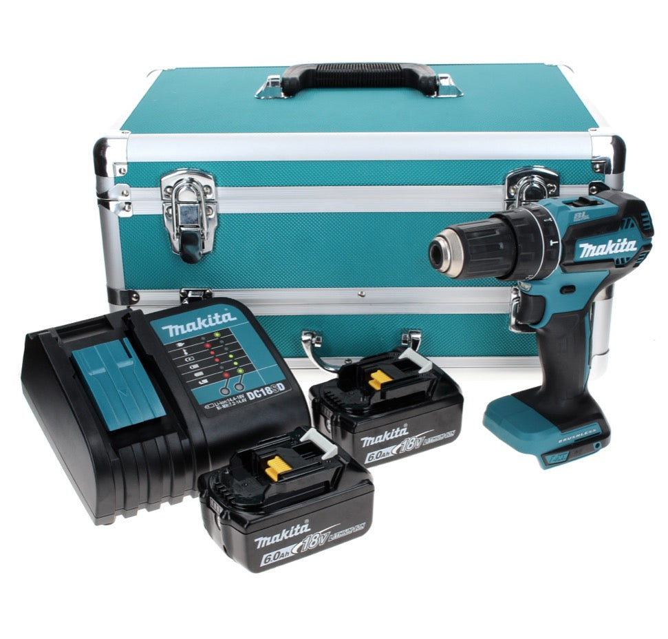 Makita DHP 485 SGTX Akku Schlagbohrschrauber 18 V 50 Nm Brushless + 2x Akku 6,0 Ah + Ladegerät + 70 tlg. Bit Bohrer Set + TX Alu Koffer