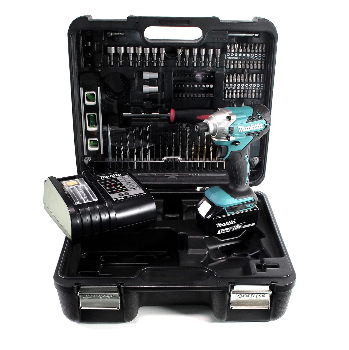 Makita DTD 156 SFTK Akku Schlagschrauber 18 V 155 Nm + 1x Akku 3,0 Ah + Ladegerät + 101 tlg. Zubehörset + Koffer