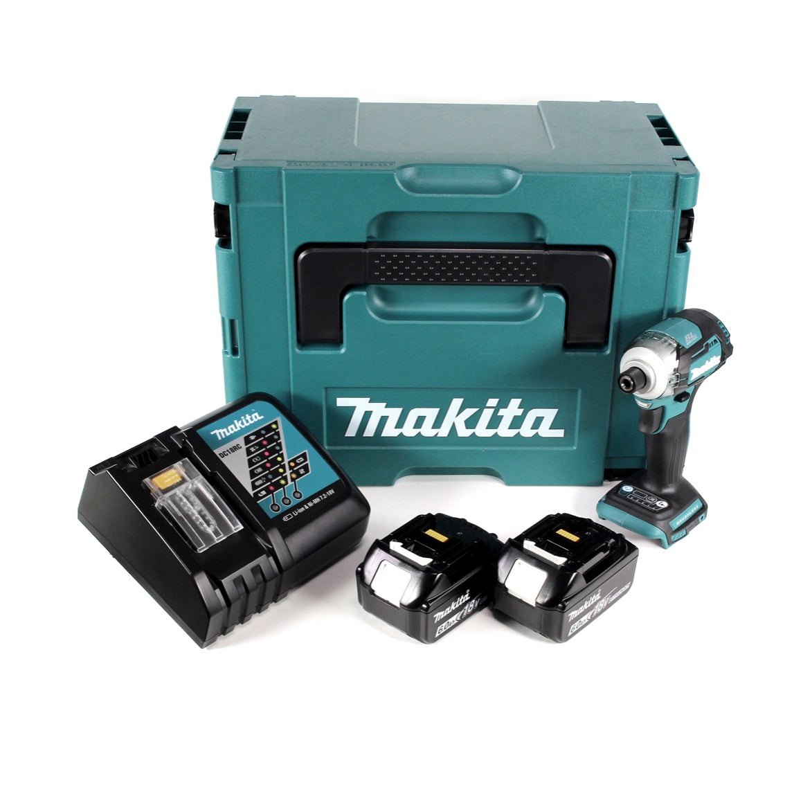 Makita DTD 170 RGJ Akku Schlagschrauber 1/4" 18 V Brushless Li-Ion mit 2x 6,0 Ah Akku und Ladegerät im MakPac