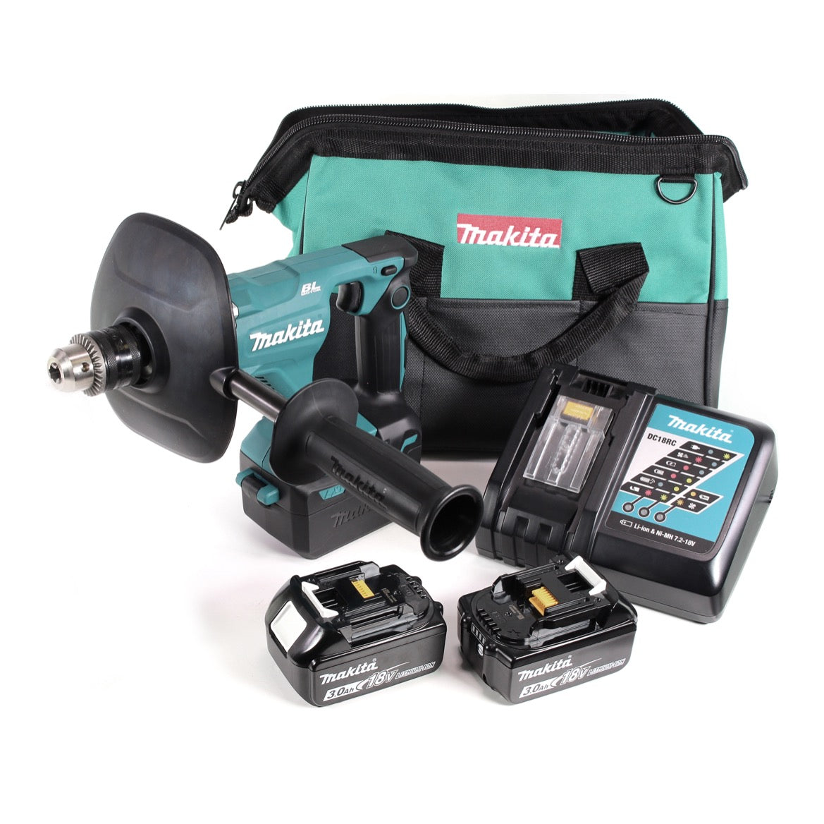 Makita DUT 131 RF Akku Rührgerät 18 V Brushless + 2x Akku 3,0 Ah + Ladegerät + Tasche