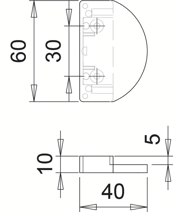 60 mm x 40 mm - viti a scomparsa - distanza di foratura 30 mm