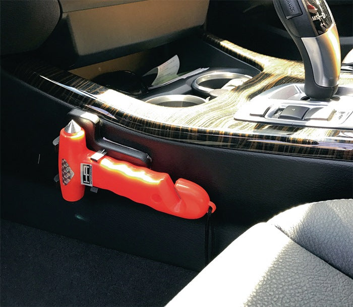 con coltello da cintura - in robusta plastica, con adesivo catarifrangente - punta del martello in acciaio appositamente temprato - coltello da cintura nell'impugnatura - rapido da impugnare grazie al supporto in dotazione - materiale di montaggio non incluso - confezione self-service