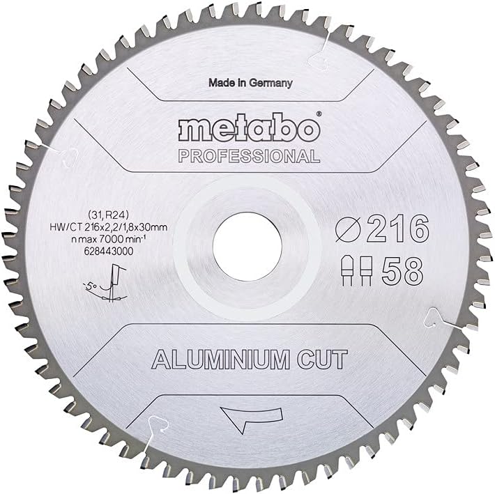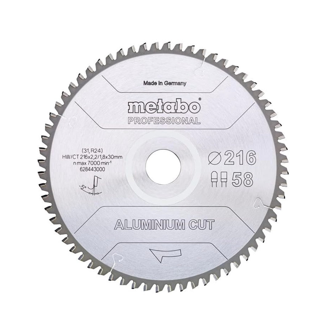 Metabo Aluminium Cut - Lama circolare professionale 216 x 30 mm Z58 FZ/TZ 5 NEG ( 628443000 ) per alluminio