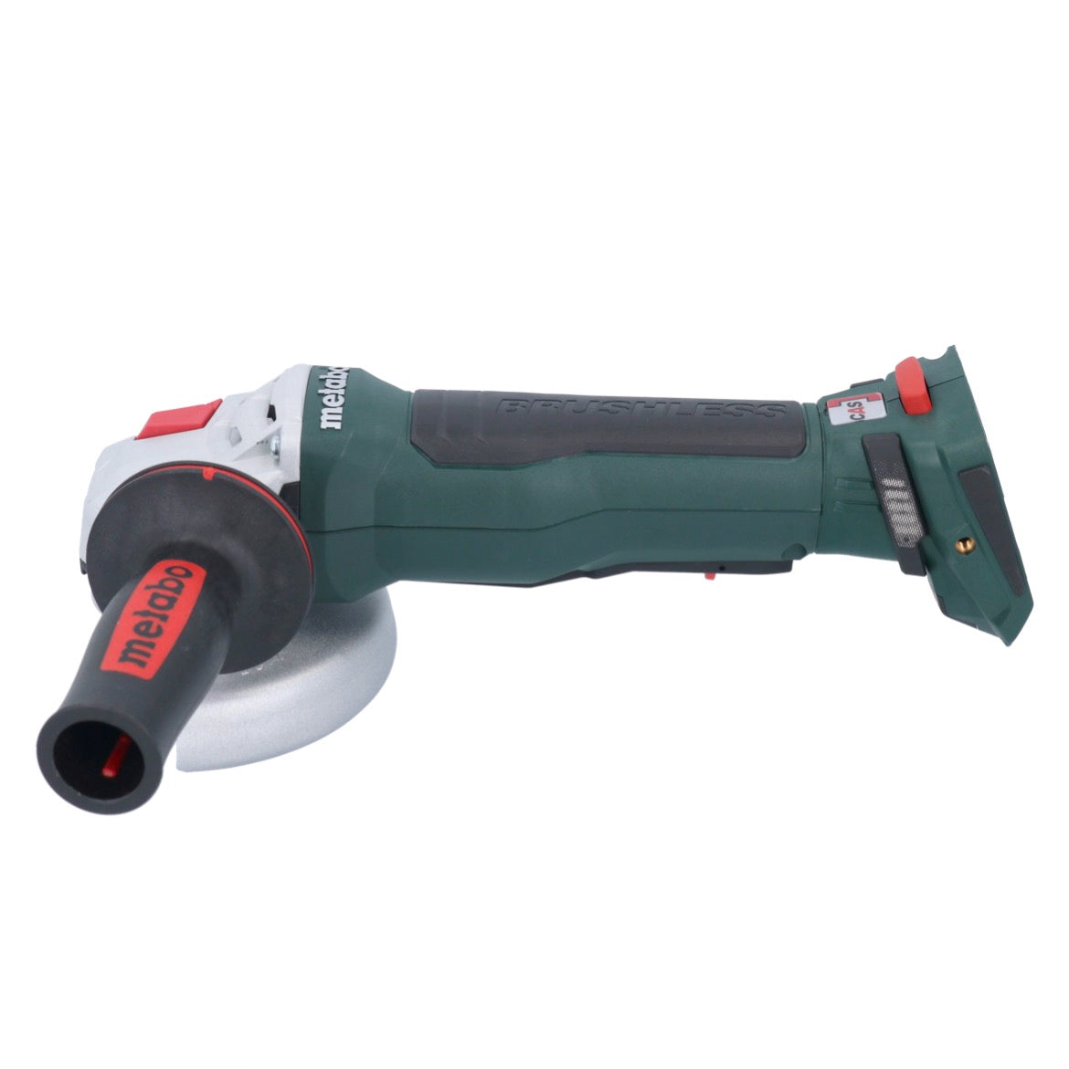 La smerigliatrice angolare a batteria senza spazzole di nuova generazione di Metabo è la più potente della sua categoria e ha la stessa potenza di un'unità di rete da 1100 watt. Grazie al motore brushless esente da manutenzione, offre la massima efficienza con la massima manovrabilità. Un sistema di frenata rapida garantisce la massima protezione dell'utente, arrestando il disco entro 1 secondo dallo spegnimento. Grazie al sistema M-Quick, è possibile sostituire il disco senza l'ausilio di attrezzi, semplicemente premendo un pulsante. La protezione regolabile senza attrezzi può essere fissata in posizione non rotante e il pacco batteria può essere ruotato con incrementi di 90° per garantire un'ergonomia ottimale in qualsiasi posizione di lavoro. La frizione meccanica di sicurezza Metabo S-automatic riduce al minimo il contraccolpo quando il disco si inceppa, al livello più basso sul mercato, garantendo la massima protezione dell'utente. La smerigliatrice angolare a batteria è inoltre dotata di protezione elettronica contro il sovraccarico, di avviamento e riavvio graduale e di un filtro antipolvere rimovibile per proteggere il motore dalle particelle più grosse. Con la smerigliatrice angolare a batteria senza spazzole di nuova generazione di Metabo, avrete la smerigliatrice più potente della sua categoria e potrete beneficiare della massima efficienza e della massima manovrabilità. Può essere abbinata a tutti i pacchi batteria da 18 V e ai caricabatterie dei marchi CAS.