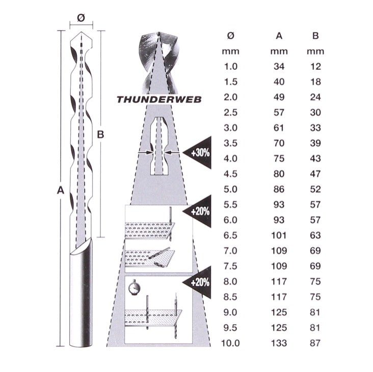 Il set di punte per metalli HSS-G di Milwaukee ha un'innovativa anima conica che viene rinforzata verso l'asta di foratura per una maggiore durata dell'utensile. La fessura di bloccaggio parabolico consente una rapida rimozione del morsetto per una bassa generazione di calore. La punta a 135° con smusso trasversale consente una filettatura precisa. La superficie lucidata garantisce un basso attrito e quindi una maggiore durata di vita utile.