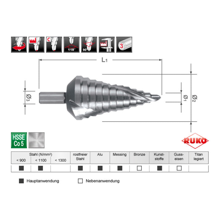 Punta a gradino RUKO gamma di foratura 6 - 37 mm ( 4000601725 )