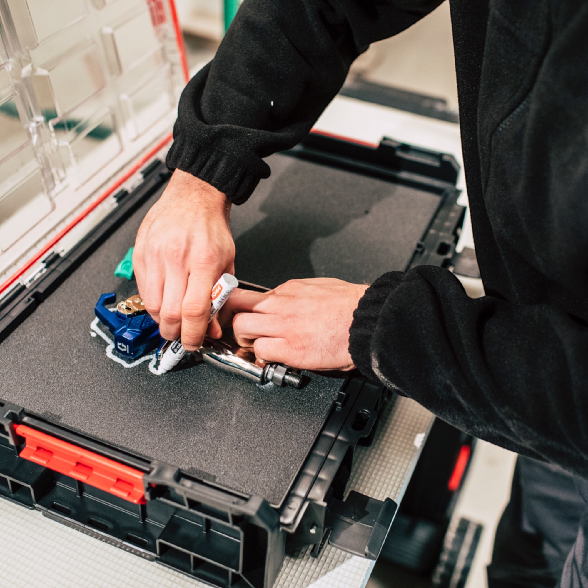 Il Qbrick System ONE Organiser 2XL è il modello più grande e più alto della famiglia di organizzatori modulari ONE, che possono essere combinati tra loro, ma anche con tutti i box della linea ONE. Come l'organizzatore XL, è l'anello di congiunzione tra il cofanetto e i modelli di organizzatori più piccoli (L, M e M Plus). La versione MFI è dotata di inserti in schiuma multistrato (2 x 2 strati e 2 x 3 strati) che proteggono perfettamente gli utensili manuali ed elettrici dopo il taglio dei fori corrispondenti. Inoltre, la guarnizione integrata nel coperchio in policarbonato garantisce una protezione completa contro l'ingresso di acqua e polvere. La versione 2.0 della linea di prodotti Qbrick System ONE è una nuova generazione di cassette portautensili e organizzatori dal design rinforzato. Adattando gli alloggiamenti a inserti filettati M8, il sistema può essere personalizzato in base alle esigenze dell'utente.