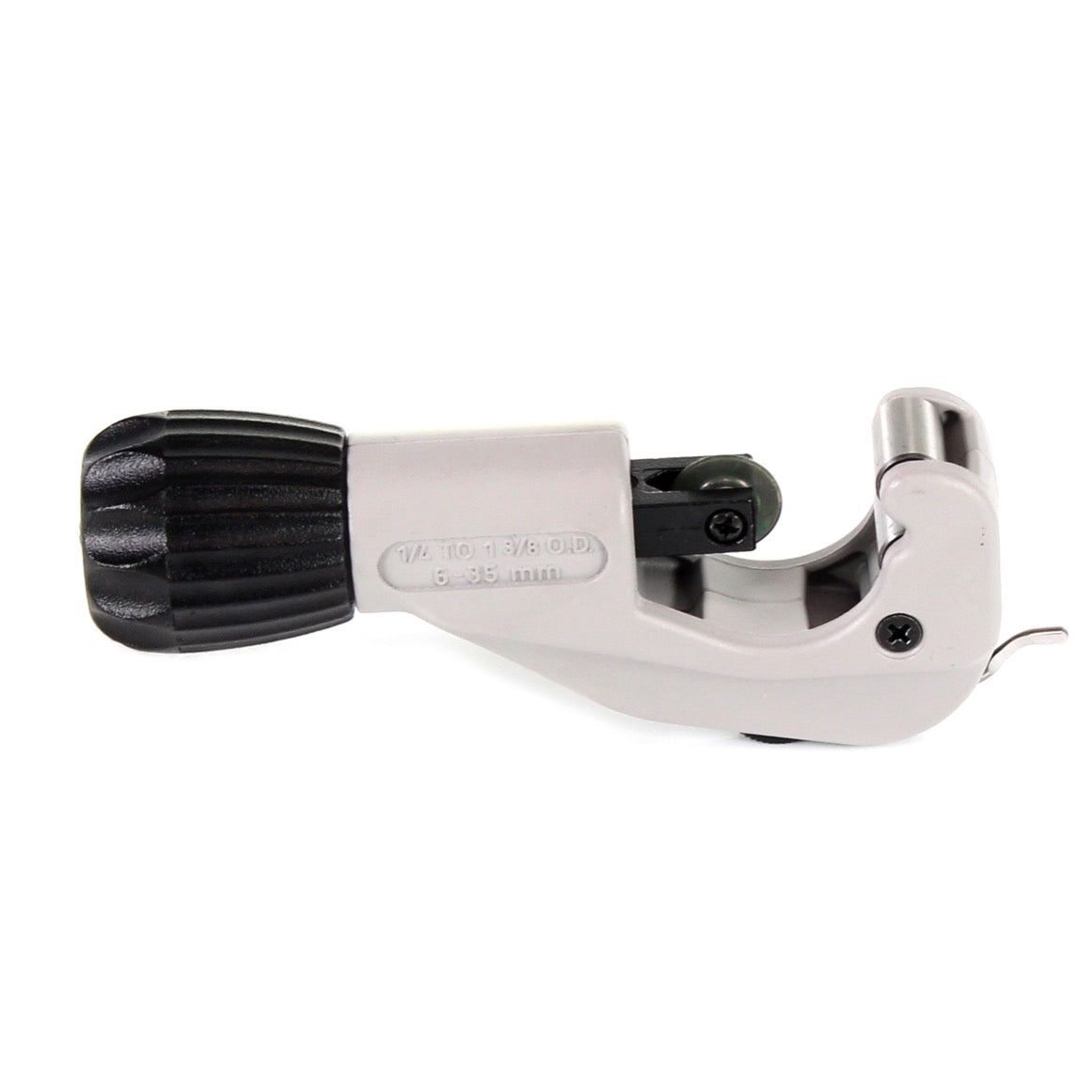 Il tagliatubi Rothenberger TUBE CUTTER 35 è ideale per tagliare i tubi in modo semplice ed economico e per la preparazione dei raccordi. Inoltre, il materiale viene risparmiato in quanto il supporto della scanalatura consente di tagliare in prossimità delle flange. Grazie alla rotella di ricambio, siete sempre pronti all'uso. L'impugnatura funziona anche senza problemi, consentendo di regolare rapidamente il raggio di lavoro. Questo tagliatubi contiene due macchine in una, in quanto contiene uno sbavatore interno retrattile per tubi. Il corpo in magnesio rende il tagliatubi leggero e al tempo stesso molto robusto.