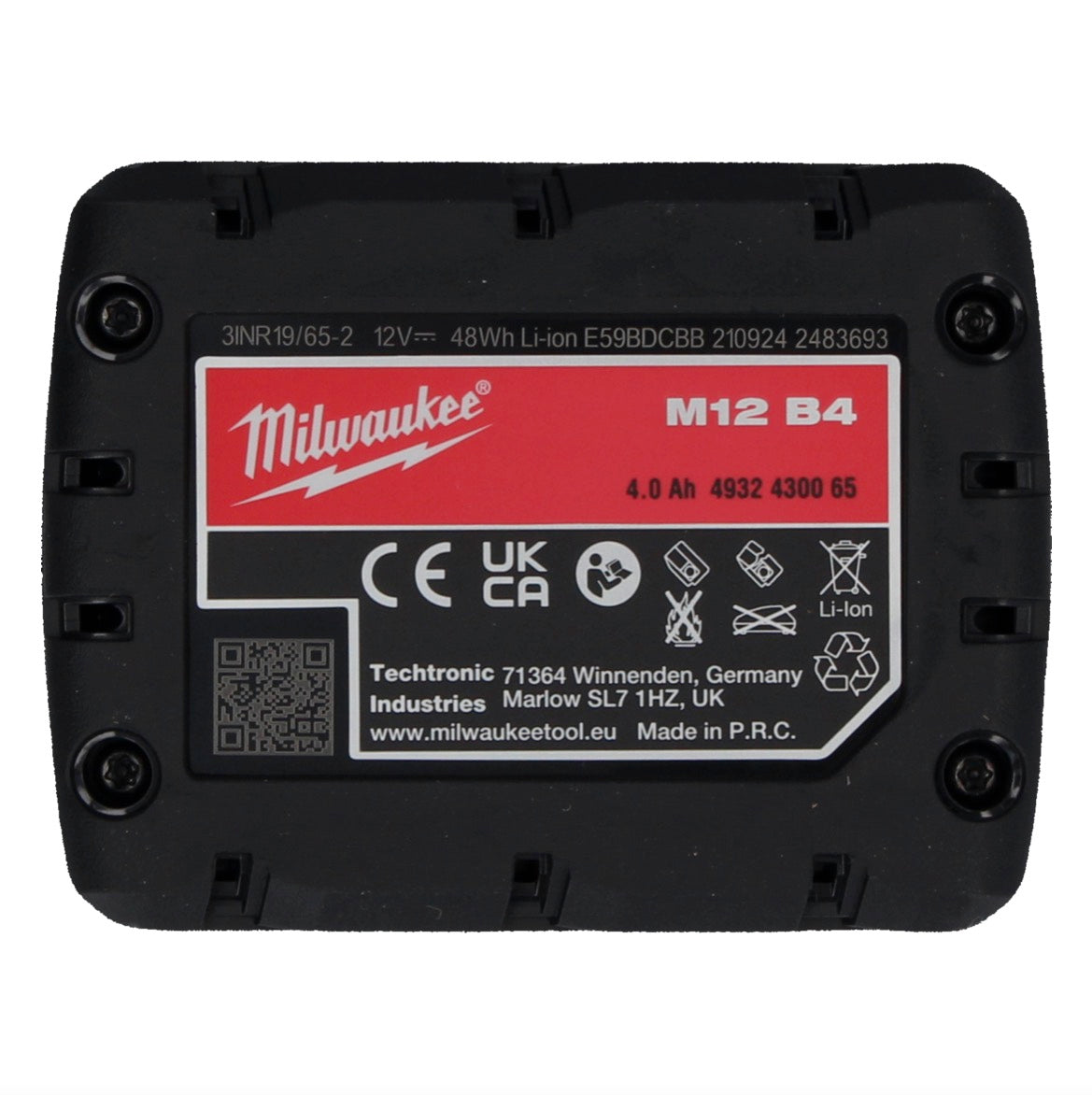 - 3x Milwaukee M12 B4 12 V 4,0 Ah / 4000 mAh Batteria agli ioni di litio a scorrimento