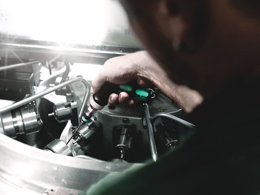 con cacciavite dinamometrico regolabile con impugnatura in Kraftform e mandrino a cambio rapido Rapidaptor - adatto per punte con attacco esagonale esterno da 6,3 mm (1/4") secondo DIN ISO 1173-C 6.3 e E 6.3 (ISO 1173) Norma: EN ISO 6789 Precisione ± 6 %.