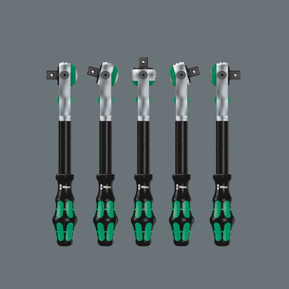 Attacco quadro da 6,3 mm (1/4 ″) e 12,5 mm (1/2 ″) - Bussole ed elementi di comando - Cricchetti con commutazione destra/sinistra in ogni posizione - Espulsione dell'utensile a slitta premendo un pulsante o un interruttore scorrevole in ogni posizione - Inserto in schiuma bicolore (sistema di controllo dell'utensile) Vantaggi speciali del prodotto: - design a volano - manicotto a sgancio rapido di facile presa - testa del cricchetto orientabile (posizioni definite a 0°, 15° e 90° a sinistra e a destra) Contenuto per attacco quadro da 6,3 mm (1/4″): 1 cricchetto girevole e reversibile da 6,3 mm (1/4 ″) (72 denti) 1 bussola da 6,3 mm (1/4 ″) SW 4 / 4,5 / 5 / 5,5 / 6 / 7 / 8 / 9 / 10 / 12 / 13 mm 1 prolunga con bussola a sgancio rapido e sistema di bloccaggio flessibile 1/4", 150 mm 1 adattatore 6,3 mm (1/4 ″) con mandrino a cambio rapido (da attacco quadro esterno da 1/4" a attacco esagonale esterno da 1/4 ″ per l'azionamento meccanico delle lame intercambiabili o sul cricchetto da 1/4 ″) Contenuto per attacco quadro da 12,5 mm (1/2 ″): 1 cricchetto girevole e reversibile da 12,5 mm (1/2 ″) (72 denti) ogni bussola da 12,5 mm (1/2 ″) SW 13 / 14 / 15 / 16 / 17 / 18 / 19 / 21 / 22 / 24 mm 1 prolunga con bussola a sgancio rapido e sistema di bloccaggio flessibile 1/2 ″, 250 mm Altro: 1 supporto manuale con impugnatura in Kraftform e mandrino Rapidaptor per il cambio rapido delle lame intercambiabili Lame intercambiabili, 89 mm, con attacco esagonale da 6,3 mm (1/4″) 1 lama intercambiabile per viti con intaglio 5,5 x 1,0 mm 1 lama intercambiabile ciascuna per viti con testa Phillips (PH) Gr. 1 / 2 / 3 1 lama intercambiabile per viti con intaglio a croce (PZD) Gr. 1 / 2 / 3 1 lama intercambiabile per viti con profilo TORX® interno (anche con perno di bloccaggio) Gr. T 10 / 15 / 20 / 25 / 30 1 lama intercambiabile per viti con profilo esagonale (profilo con foro) Gr. 3 / 4 / 5 / 6 mm