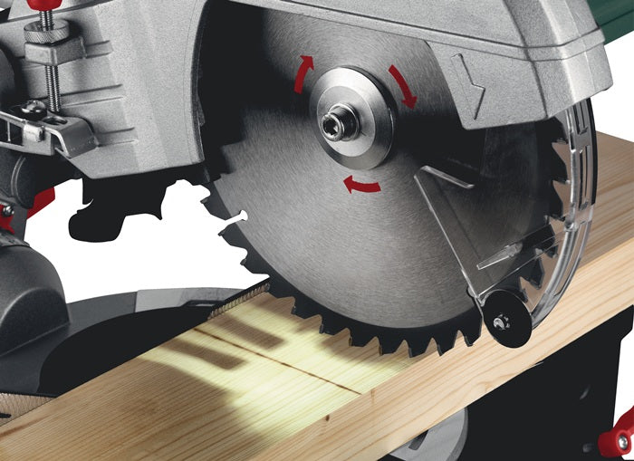 Linea di taglio di precisione (PLC): linea d'ombra esatta senza necessità di regolazione - tavola rotante con regolazione rapida e precisa degli angoli comuni tramite punti di bloccaggio - robusta struttura in alluminio pressofuso - imbuto di raccolta trucioli - prolunghe del tavolo estensibili e anche rimovibili - morsetto a serraggio rapido - scale ed elementi di comando ben visibili e di uso intuitivo - aree di presa ergonomiche