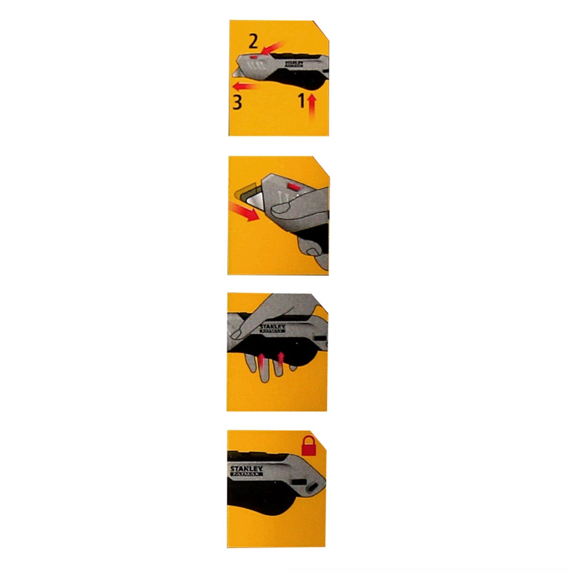Questo pratico coltello Stanley offre un elevato livello di sicurezza per le persone e le merci grazie al ritiro automatico della lama non appena il contatto con il materiale non è più presente o la leva non viene più azionata. Un altro punto a favore di questo utensile è il miglioramento dell'ergonomia: l'impugnatura della pinza garantisce un carico inferiore ed è ideale sia per un utilizzo a lungo termine che per le mani più piccole. L'impugnatura comfort in gomma permette di lavorare in sicurezza senza scivolare e garantisce un migliore controllo durante il taglio. La costruzione robusta e resistente in metallo lo rende ideale per il difficile ambiente di lavoro. È possibile cambiare la lama in modo semplice e senza attrezzi. Inoltre, questo coltello può essere sempre conservato in modo sicuro grazie al pratico occhiello di fissaggio e al meccanismo di bloccaggio. È ideale per il taglio di tutti i materiali da imballaggio, cartone o plastica.