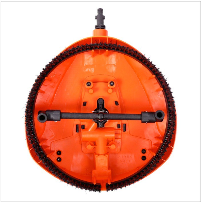 - Die großflächige Spritzhaube fängt das Wasser umgehend ab