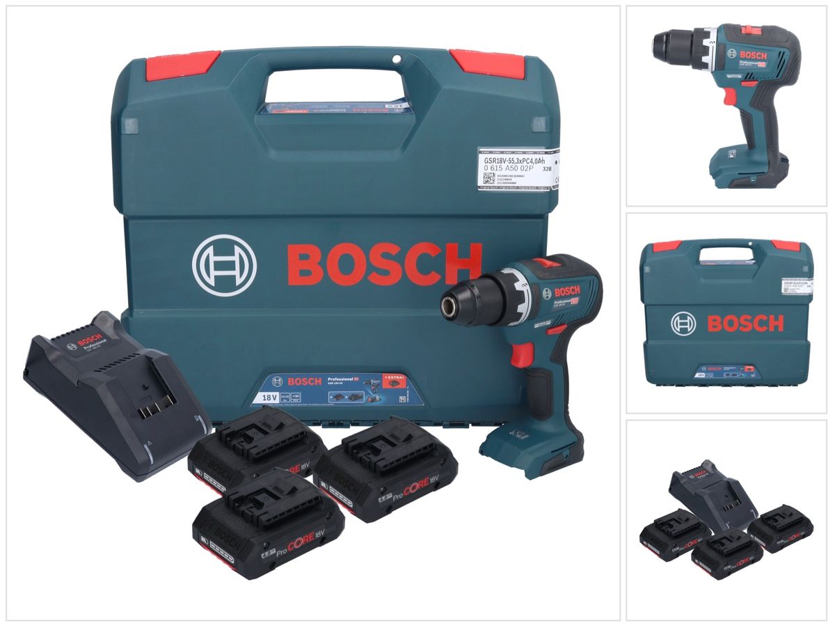 Trapano avvitatore a batteria Bosch GSR 18V-55 Professional 18 V 55 Nm Brushless ( 0615A5002P ) + 3x batteria ProCORE 4,0 Ah + caricabatterie + L-Case