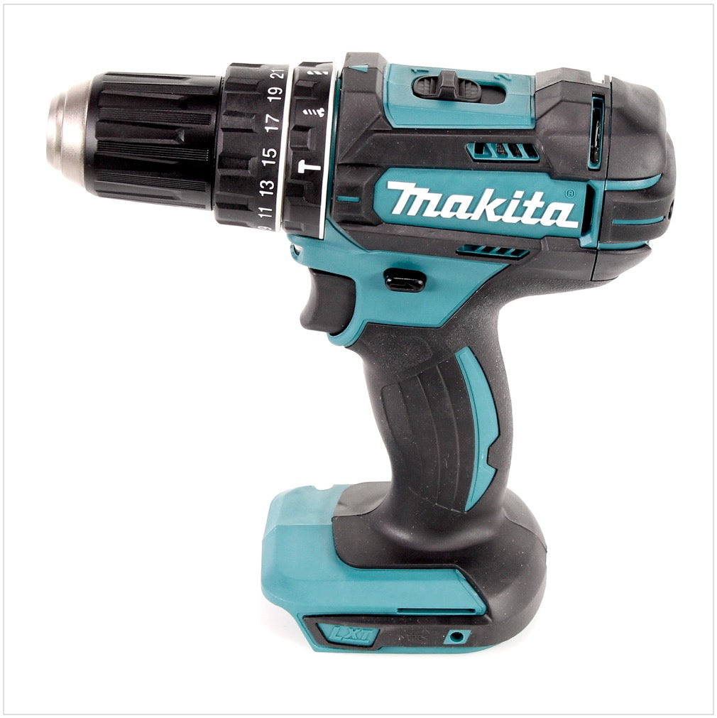 - 1x akumulatorowa wiertarko-wkrętarka udarowa Makita DHP 482 Z 18 V Li-Ion