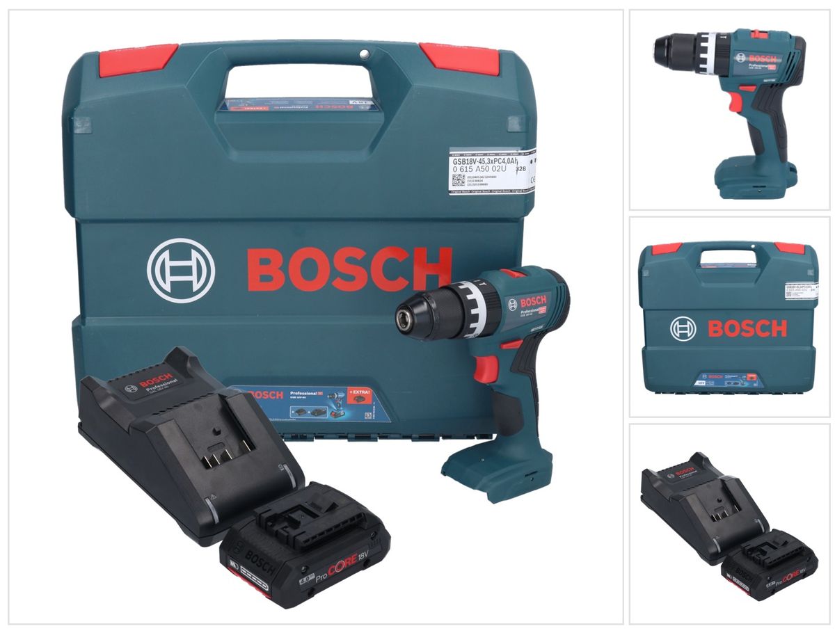 Bosch GSB 18V-45 Profesjonalna akumulatorowa wiertarko-wkrętarka udarowa 18 V 45 Nm bezszczotkowa + 1x akumulator ProCORE 4,0 Ah + ładowarka + walizka L