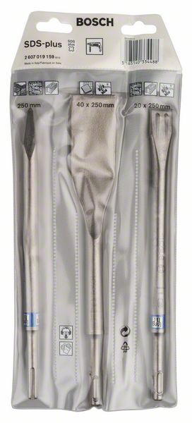 Bosch Meißel Set SDS-plus 3tlg. ( 2607019159 ) Flach / Spitz / Fließenmeißel Long Life selbstschärfend