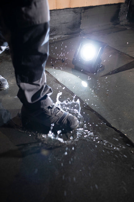 kompatybilny z 38 różnymi akumulatorami 18V (różne klasy Ah) producentów elektronarzędzi Bosch Professional, Makita, Dewalt, Milwaukee, Metabo CAS - większa elastyczność dzięki technologii hybrydowej: możliwość pracy akumulatorowej i sieciowej, automatyczne przełączanie z sieci na akumulator w przypadku awarii zasilania - wtykowe podłączenie kabla - włącznik z funkcją: 100% - 75% - 50% - 25% światła - czas świecenia zależy od zastosowanego akumulatora, ok. 20 min / 1 Ah przy 100% mocy świetlnej - wskaźnik stanu akumulatora - akumulatory są chronione przed głębokim rozładowaniem i przegrzaniem - zdejmowana pokrywa ochronna akumulatora - reflektor LED z zabezpieczeniem przed przechyleniem, chroni obiektyw i obudowę reflektora - obudowa z odlewanego ciśnieniowo aluminium - gumowa powłoka chroniąca obudowę - ergonomiczny uchwyt - włącznik/wyłącznik - możliwość montażu na statywie - nadaje się do trudnych warunków pracy