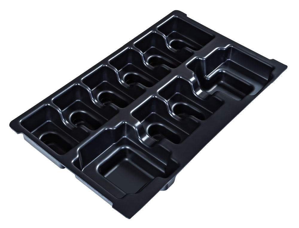 Tacka na baterie CAS XLB to wysokiej jakości głęboko tłoczona wkładka, zaprojektowana tak, aby pasowała do ładowarek i baterii z systemu baterii AMPShare i Cordless Alliance System (CAS). Oferuje bezpieczne i stabilne rozwiązanie do przechowywania i transportu baterii i ładowarek. Dzięki wkładce CAS XLB baterie są zawsze pod ręką i chronione przed czynnikami zewnętrznymi, takimi jak kurz, brud i uszkodzenia. Solidna konstrukcja zapewnia długą żywotność i niezawodne działanie wkładki.