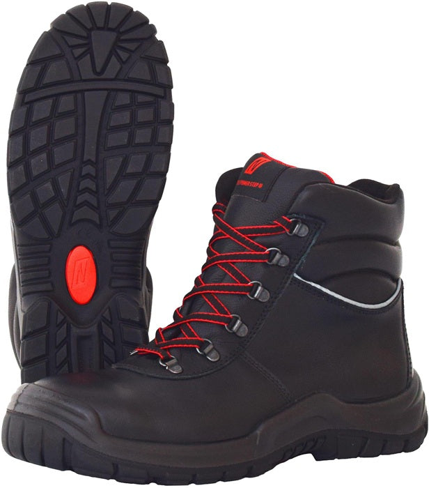 zgodnie z normą EN ISO 20345 - S3 HI HRO - wysoka - powierzchnia: wytrzymała pełnoziarnista skóra - wytrzymała podeszwa zewnętrzna PU/Nitryl - stalowy podnosek - stalowa podeszwa środkowa odporna na przebicie - wysokiej jakości wkładka 700C // COMFORT STEP - ergonomicznie ukształtowany - atrakcyjny design - spłaszczona pięta dla naturalnego ruchu toczenia - najlepsza możliwa odporność na poślizg (SRC) - dodatkowa nakładka - dobrze wyściełany trzon dla najlepszego możliwego wsparcia i komfortu - jakość premium - zgodnie z DGUV 112-191 - szerokość 11 na zamówienie dostępne również od rozmiaru 36 do rozmiaru 50. 36 i do rozmiaru 50 dostępne na zamówienie