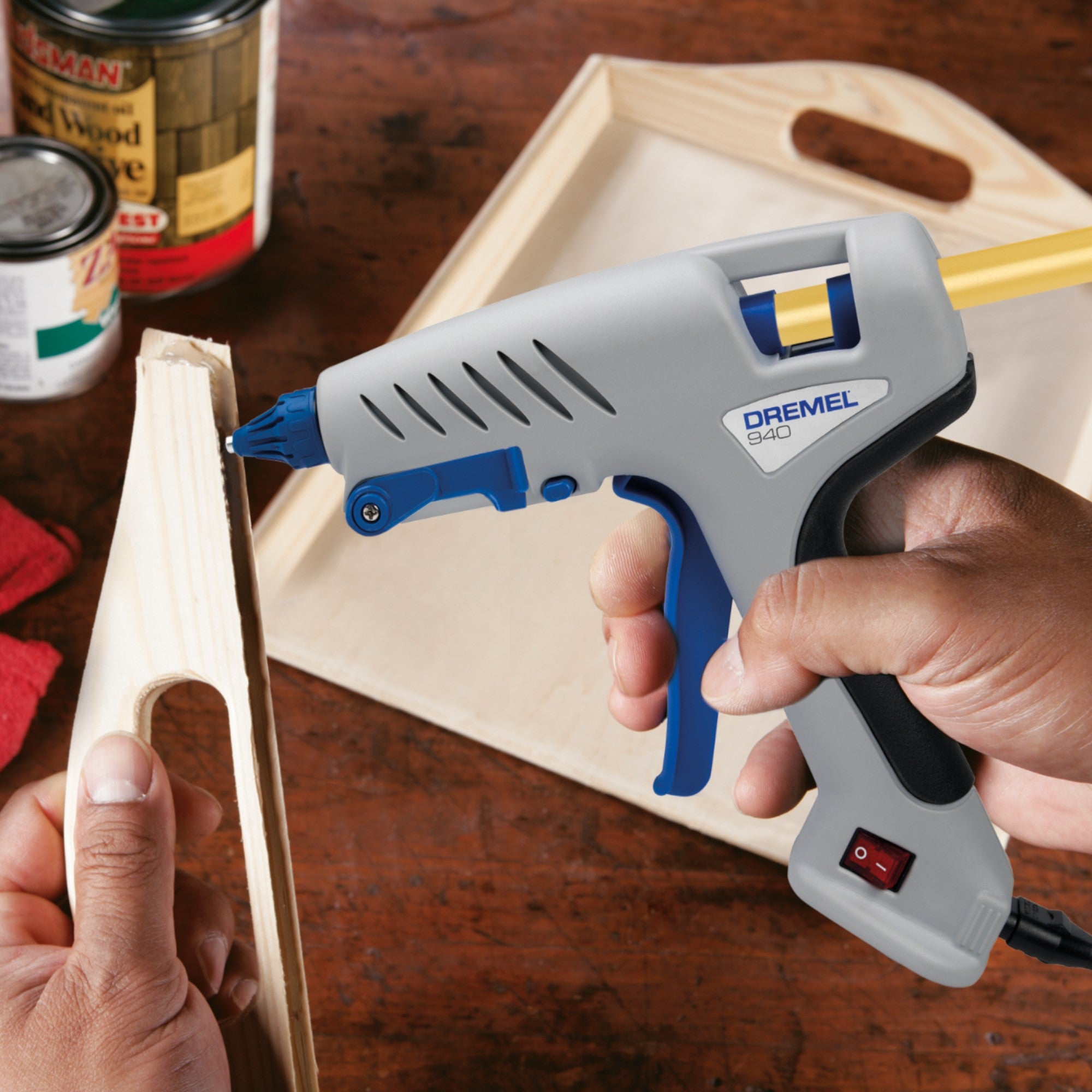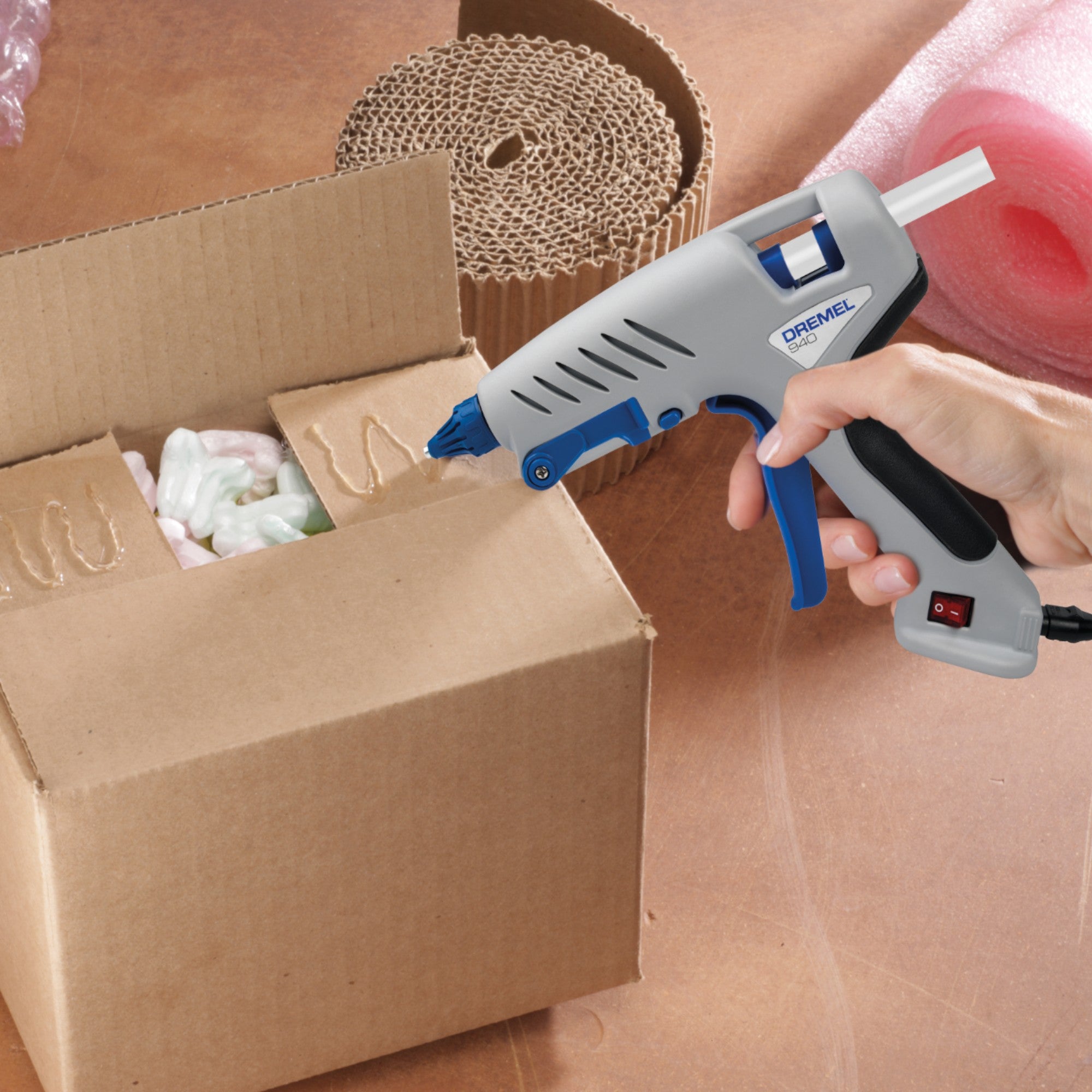 - 1x pistolet do klejenia na gorąco Dremel 940