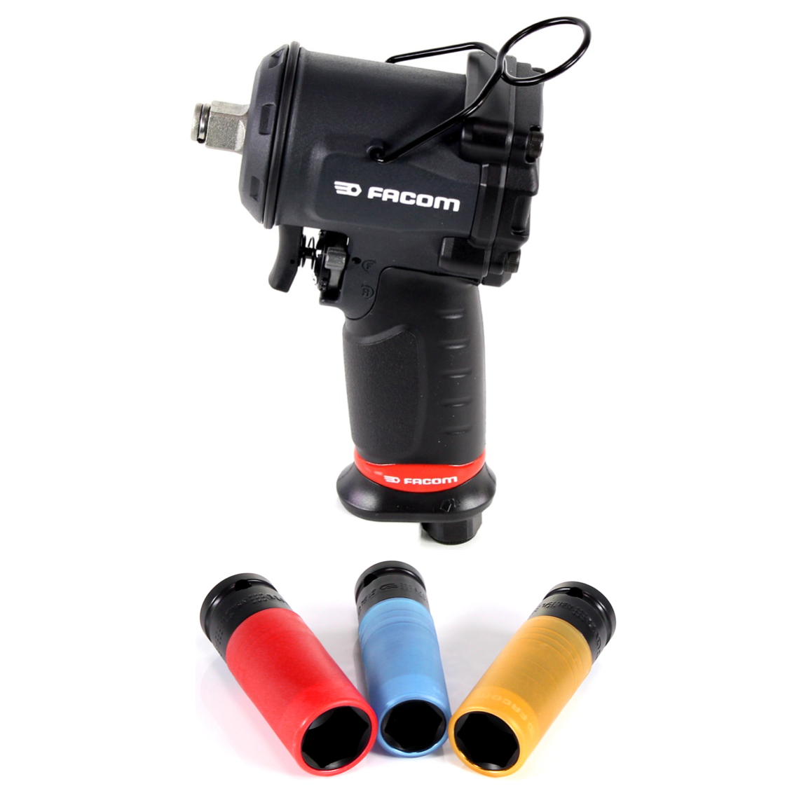 Facom NS.1600 F 1/2" Druckluft Schlagschrauber Set mit Facom NSI.3L 1/2¨ Impact Schlag Steckschlüssel Satz 3 tlg.